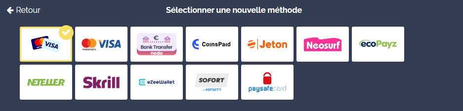 En plus de soutenir le bitcoin, le casino accepte également de nombreux moyens de paiement, notamment :