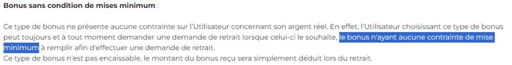 Ces deux types de bonus sont soumis à certaines conditions de mise qui sont parfois contraignantes pour les joueurs. Cependant, il existe un bonus qui ne demande aucune exigence de mise de votre part. Il s’agit du bonus sans wager.