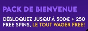 Vous avez même un bonus de 10€ sans dépôt, cette fois-ci associé à un wager. Cependant, votre premier dépôt est augmenté de 150% jusqu’à 500€, sans condition de mises minimum.