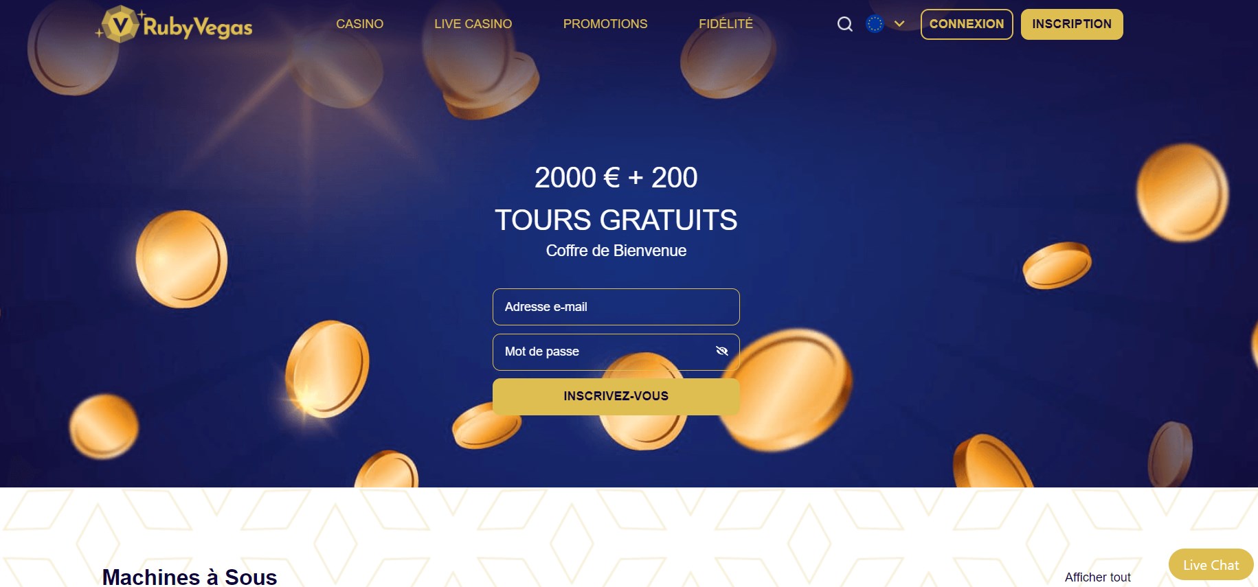 S’inspirant de l’ambiance luxueuse des casinos traditionnels de Las Vegas, Ruby Vegas apporte cette même excellence en ligne. Avec des graphismes de qualité et une interface sophistiquée, ce casino charme non seulement visuellement mais également par l’attractivité de ses jeux hautement rémunérateurs. C’est l’un des casinos avec argent réel qui paye le plus !