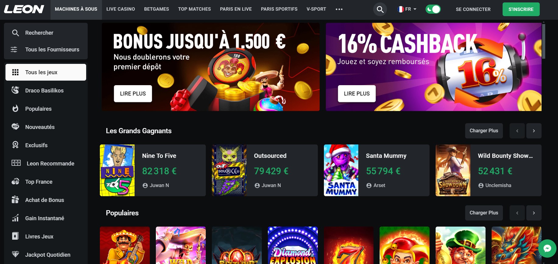 Leonbet est synonyme de divertissement varié, proposant non seulement des jeux de casino traditionnels mais aussi des options de paris sportifs. Cette plateforme pionnière accueille des amateurs de tous horizons grâce à ses offres intégrées et son RTP attractif sur plusieurs de ses titres populaires.