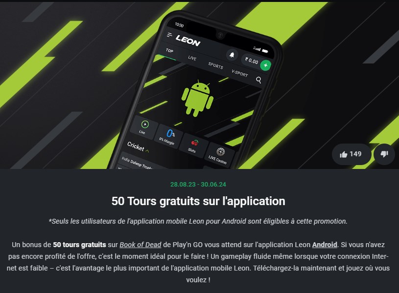 Leonbet casino est l’un des rares opérateurs qui possèdent sa propre application mobile. Vous pouvez jouer sur navigateur ou alors télécharger et installer le logiciel en quelques secondes pour vous amuser. Cet établissement ludique virtuel propose de nombreuses options de paiement avec des limites intéressantes.