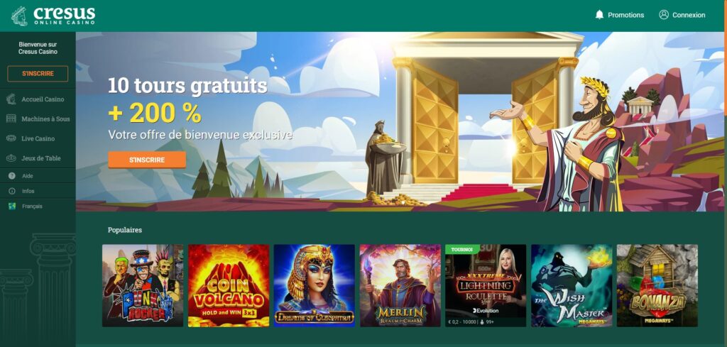 C’est dans une ambiance de la Grèce antique que Cresus Casino vous invite à jouer à des milliers de jeux où vous aurez une chance de gagner gros ! Leur nom vient du roi Crésus, le roi du pays de Lydie, célèbre pour sa richesse. Il s’agit du plus gros casino en ligne francophone en termes de joueurs.