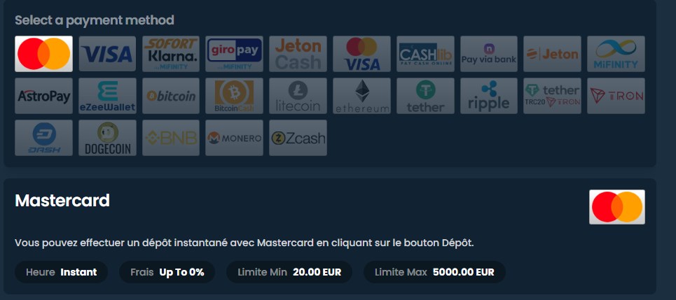 | Mastercard | 20 € – 5 000 € | Instantané |