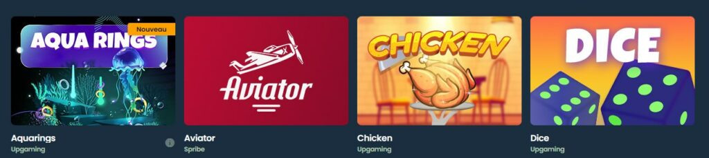Nous sommes complètement comblés par les choix effectués par Depositwin pour garnir cette collection de mini-jeux. Vous pouvez compter sur la présence du leader mondial Spribe, mais également sur les créations d’Upgaming et Smartsoft. Nous vous conseillons de cliquer dès maintenant sur « Jouer pour le plaisir » pour tester ces titres gratuitement.