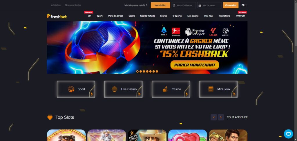 Rendez-vous sur la page d’accueil freshbet.com en cliquant sur l’un des liens de notre revue, puis cliquez sur le bouton orange « Inscription ». Une fois que vous avez renseigné vos coordonnées, vous pouvez jouer !