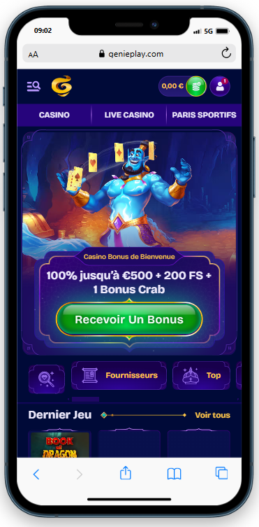 Nous attribuons une note de 5/5 à Genie Play Casino. En effet, nous avons rarement vu un établissement aussi récent et aussi complet ! Avec +9000 jeux disponibles dans sa collection et des milliers de paris sportifs accessibles dans la section « Sports », vous ne risquez pas de vous ennuyer. De plus, le génie est plutôt généreux, puisqu’il prévoit un cashback jusqu’à 25 % pour ses meilleurs joueurs, un bonus de bienvenue de 100 % jusqu’à 500 € + 200 FS + 1 Bonus Crab pour ses nouveaux joueurs et de nombreuses autres promotions tout au long des semaines. Franchement, c’est difficile de faire mieux selon nous.