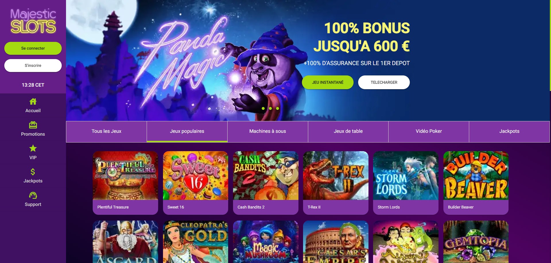 Dans cet avis Majestic Slots, on fait le tour du site, on vous donne des conseils et on vous explique comment bénéficier du bonus de bienvenue.