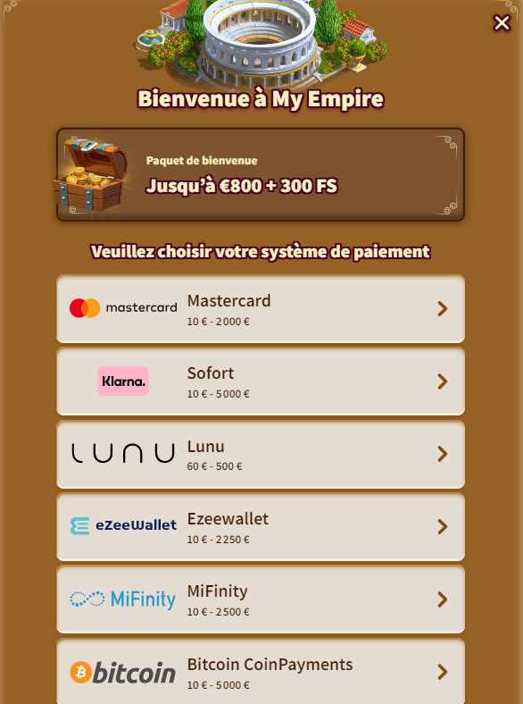 Rien à dire, MyEmpire a prévu le coup pour tous les profils de joueurs : fiat ou crypto, toutes les solutions nous semblent parfaitement adaptées.