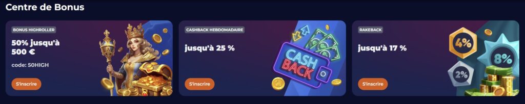 | 50% jusqu’à 500€ | Bonus HighRoller, 50 % de bonus jusqu’à 500€ avec le code 50HIGH wager x35 |