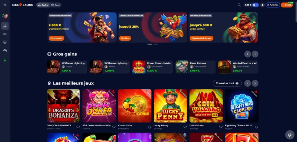 Quand on parle de casinos en ligne, la question de leur fiabilité revient souvent. Un bon indicateur pour évaluer un casino est son année d’établissement et le nombre de jeux qu’il propose. Par exemple, Nine Casino a été établi en 2021 et offre plus de 7 000 jeux différents, indiquant un niveau élevé d’investissement dans la variété de l’expérience utilisateur.