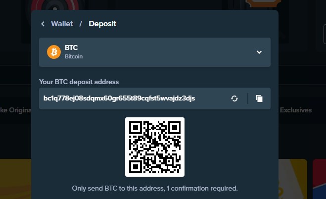 Vous avez juste à cliquer sur « Portefeuille » puis « Déposer », choisir votre cryptomonnaie et envoyer le paiement sur l’adresse que le site vous donne.