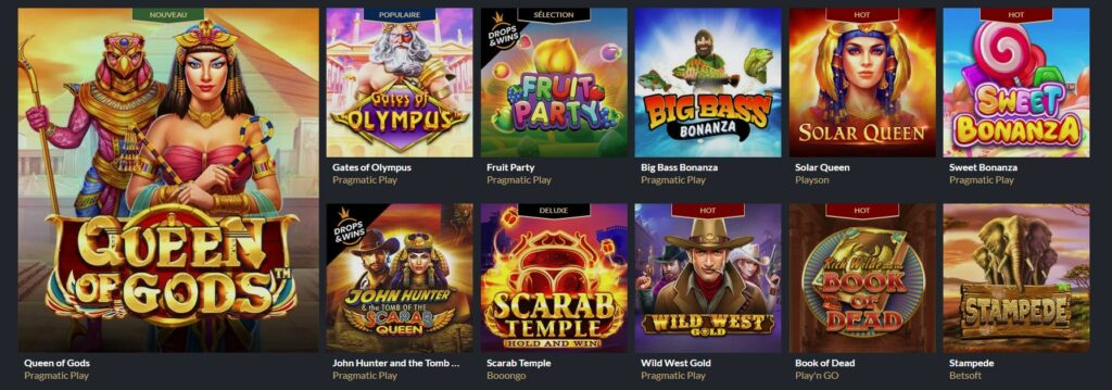Vous pouvez jouer notamment à The Dog House, Sweet Bonanza, Money Train 2, Multifly et j’en passe.