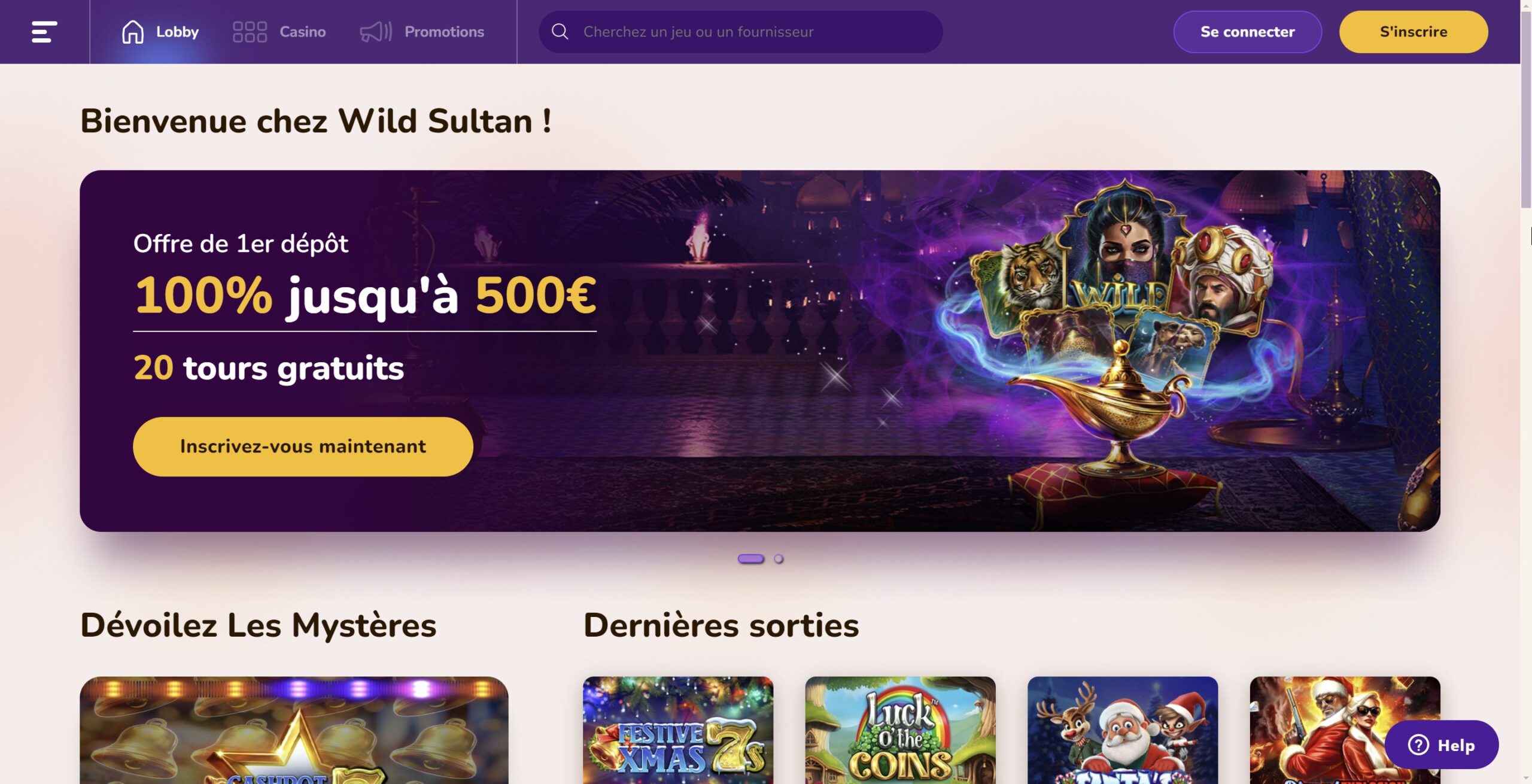 Le casino en ligne Wild Sultan offre une atmosphère orientale. Disponible depuis 2015, le casino a acquis une bonne réputation auprès des joueurs, notamment pour la fiabilité des paiements et la grande sélection de jeux de nombreux développeurs différents.