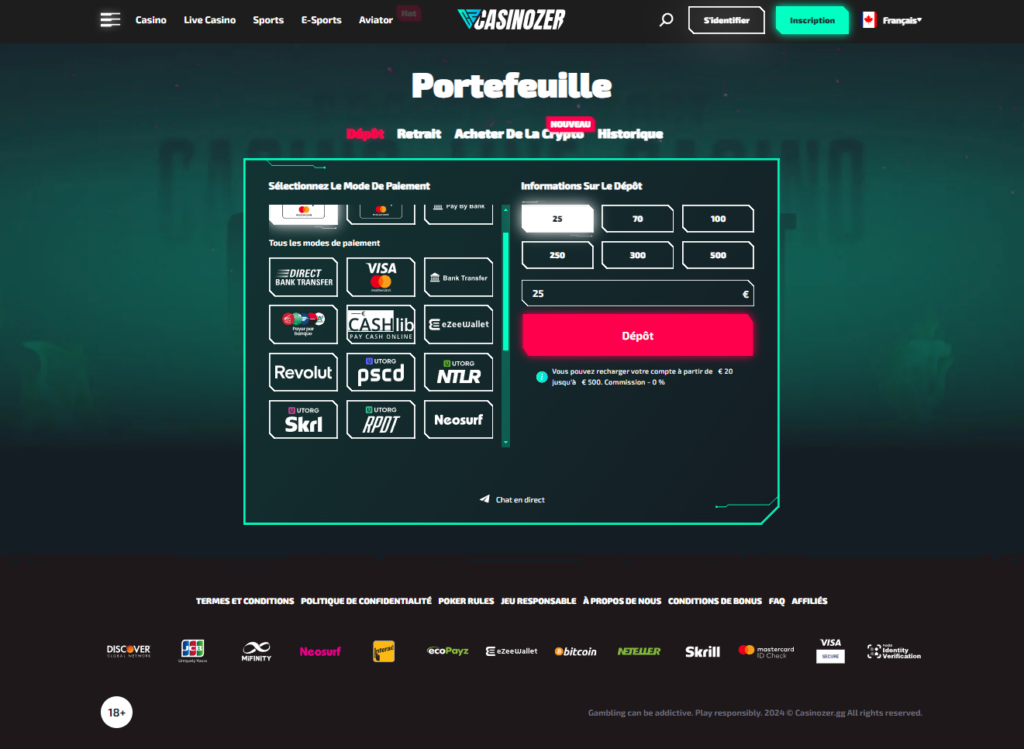 Comment déposer sur Casinozer ?