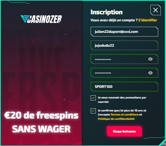 Comment s’inscrire sur Casinozer