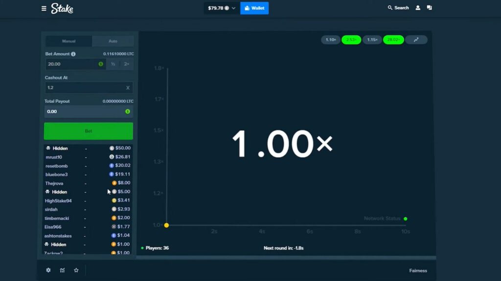 La fonction « Équité » vous offre la possibilité de vérifier le pari et sa véracité. Elle est accessible dans le coin inférieur droit du jeu Crash Stake et permet aux joueurs d’être sûr que le pari n’est pas truqué.