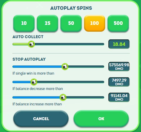 Cliquez sur le bouton en bas à gauche de votre écran et un panneau « Autoplay Spins » s’affichera.