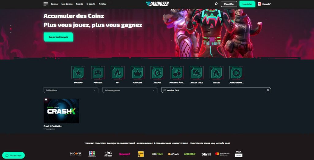 Si vous voulez tester le jeu sans avoir à risquer votre argent, vous pouvez utiliser la démo disponible au début de cet article ou sur le site de l’éditeur (Turbo Games). Une fois que vous vous sentez prêt à miser de l’argent sur Crash X Football, faites un tour sur Casinozer.