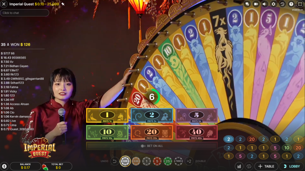 Imperial Quest est un jeu de casino lancé sur le marché par Evolution Gaming en 2020. C’est une version améliorée de Dream Catcher, notamment des différences au niveau des effets visuels.