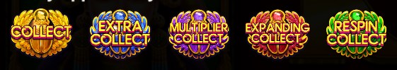 Il existe plusieurs symboles « Collection » et plusieurs types de capacités qui leur sont associées. Vous pouvez obtenir un symbole Collect simple, qui paie ce que les autres scarabées offrent. Il existe un symbole Extra Credit Collect, qui rapporte un prix supplémentaire, en plus du prix normal. La Collecte Multiplicateur augmente le gain d’un certain montant, jusqu’à 25x. Expanding Collect transforme les symboles d’argent en icônes étendues, couvrant les rouleaux entiers et offrant plus de prix. Respin Collect verrouille les symboles d’argent et rejoue les autres positions, afin que vous puissiez gagner des prix supplémentaires.