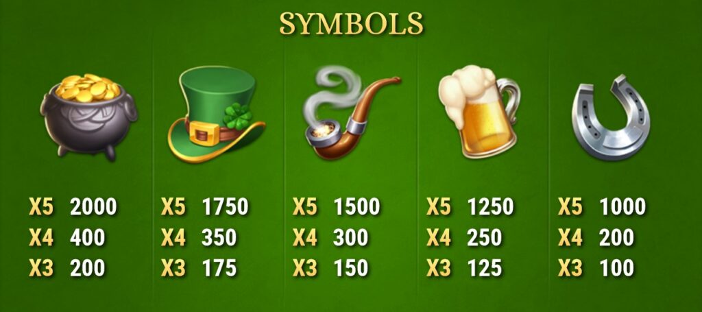 Il ne s’agirait pas d’une machine à sous sur le thème de l’Irlande sans une fonction de chance irlandaise. Celle-ci peut être déclenchée en faisant apparaître deux symboles scatter trèfle à quatre feuilles n’importe où sur les rouleaux. Vous gagnerez alors au hasard l’un de ces prix :