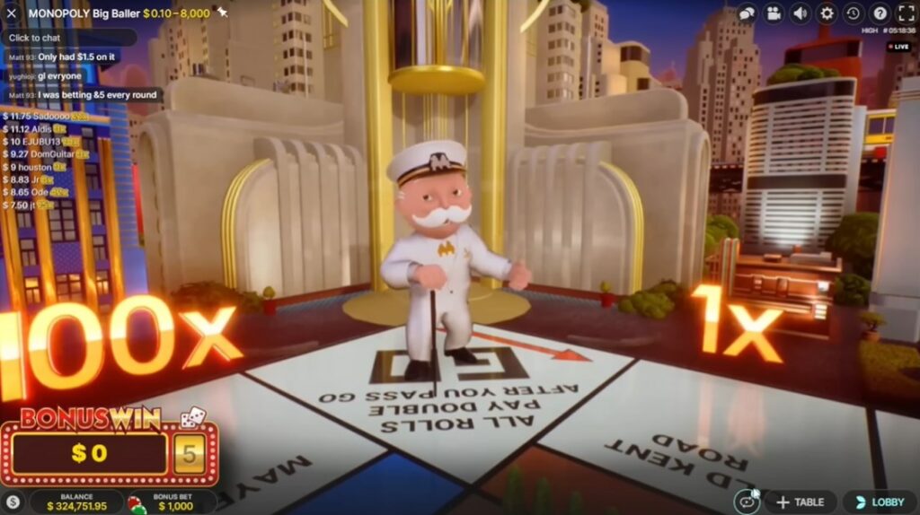 Bien évidemment, Evolution nous propose bien plus qu’un simple jeu de bingo, Monopoly Big Baller est un jeu casino en live plein de surprises.