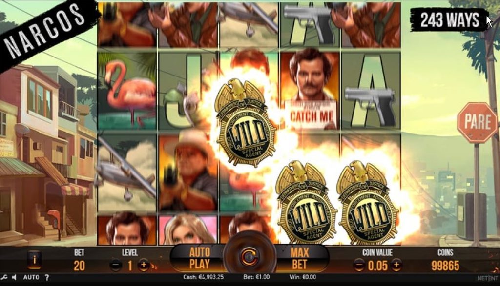 Tout le monde est devenu fou de la populaire émission de télévision Narcos et c’est probablement la raison pour laquelle les bonnes gens de NetEnt ont décidé de consacrer leur dernière sortie à l’histoire de Pablo Escobar. La machine à sous vidéo Narcos comporte cinq bobines, trois rangées et bénéficie de 243 façons de gagner.