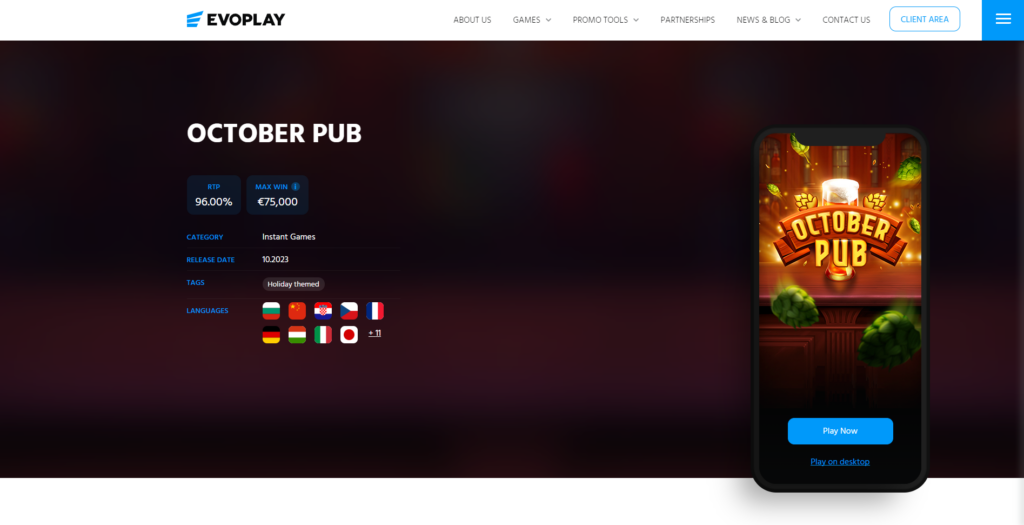 October Pub est un jeu de casino mis sur le marché par le fournisseur de logiciel Evoplay. C’est un divertissement à travers lequel les joueurs profitent de l’excitation d’un festival de la bière pour verser des pintes.