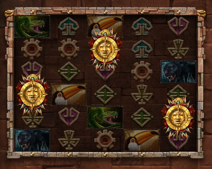 Avec pour décor un imposant temple aztèque dans une jungle brumeuse, et une musique de style Ace of Base, vous verrez sur les rouleaux 5 symboles de pierre ainsi que des oiseaux toucans, des serpents et des panthères noires.