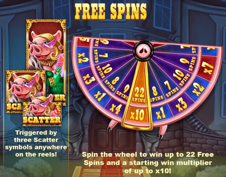 D’autre part, la machine à sous Piggy Riches Megaways est aussi dotée de la fonctionnalité de free spins. Elle est activée à travers l’apparition de Mme Piggy, le deuxième symbole scatter sur la grille du jeu. Il suffit d’en obtenir trois sur le même tour pour profiter de la roue des tours gratuits accompagnée d’un multiplicateur. Ce dernier augmente de x1 pour chaque combinaison gagnante que vous trouvez et peut monter indéfiniment sans aucune limite. En outre, à l’instar des slots populaires sur le marché, celle-ci est également dotée de la fonctionnalité de lecture automatique.