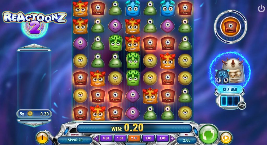 Reactoonz 2 est un jeu impressionnant, rempli de fonctionnalités amusantes et s’inspirant de la version originale de la machine à sous (Avis sur Reactoonz). Il conserve le même gameplay, et de nouveaux monstres ont également fait leur apparition.