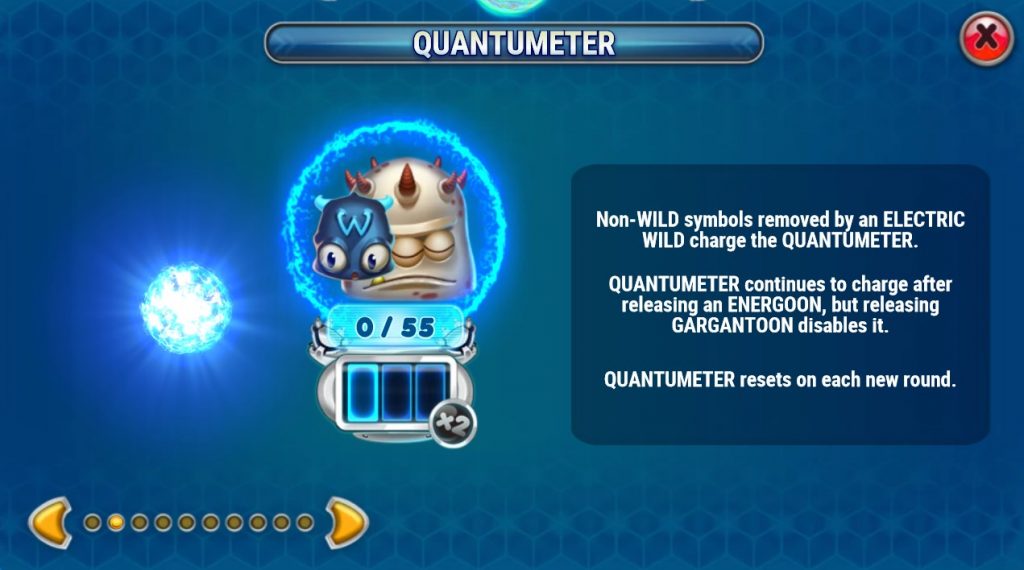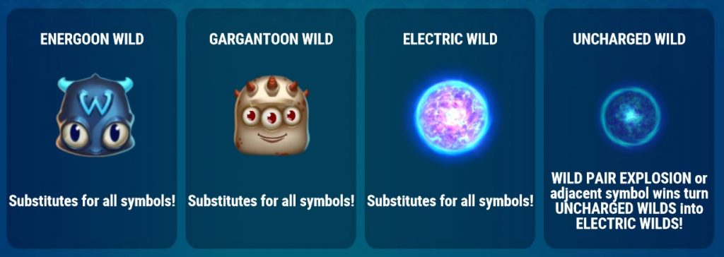 Les jokers électriques remplacent tout autre symbole. Si des symboles non wild sont zappés par le joker électrique, le Quantumeter sera chargé, chaque symbole valant une charge. Le Quantumeter continuera à se charger une fois que le Energoon sera relâché, mais sera désactivé si un symbole Gargantoon est relâché.