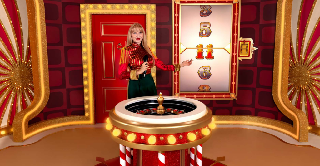 La roulette en live Red Door Roulette est un titre de Evolution sortie en 2023. Fusion entre les jeux Lightning Roulette et Crazy Time, cette variante offre un multiplicateur de gains et une roue de bonus. Aussi, sa magnifique décoration rappelle fortement l’ambiance d’un cirque ou d’une fête foraine. Des effets sonores aux graphismes en passant par les fonctionnalités, ce nouveau titre de Evolution a tout pour vous plaire.