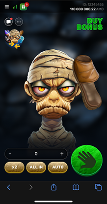 Cliquer simplement sur le bouton vert représentant une main initie une série de gifles, facilitant l’interaction avec le jeu.
