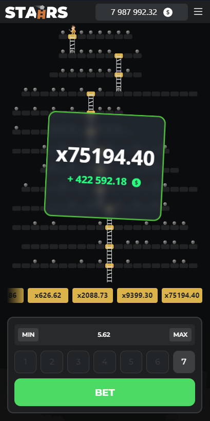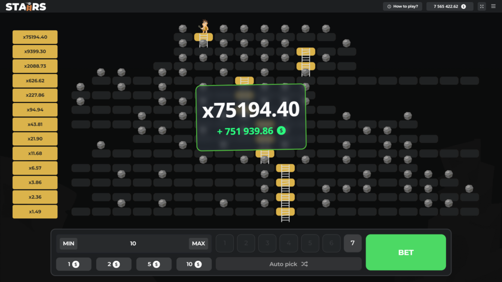 Stairs est un mini-jeu de casino qui vous met au défi de grimper une échelle en évitant des pièges cachés, sous forme de rochers.