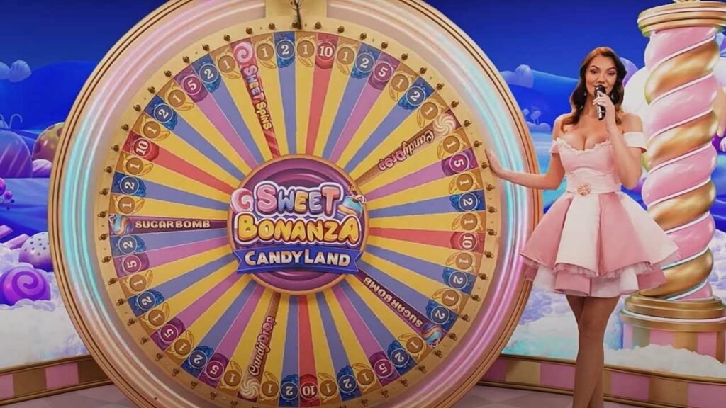 Après avoir lancé différents jeux en direct comme le Speed Baccarat, Dragon Tiger, ONE Blackjack, etc. Pragmatic Play décide de lancer une nouvelle roue de la chance, Sweet Bonanza Candyland, inspiré par sa machine à sous éponyme, Sweet Bonanza. Si vous avez déjà joué à la roue de la fortune d’Evolution, Crazy Time, vous ne serez pas dépaysés vue que le gameplay est sensiblement le même.