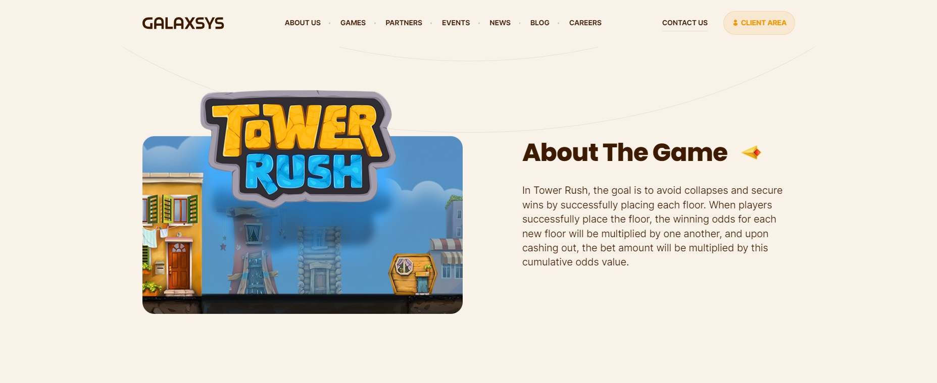 Tower Rush, développé par Galaxsys, est l’un des jeux instantanés ayant marqué l’année. Le concept est simple mais captivant : construire un building en empilant des étages, tout en essayant de maximiser ses gains via des multiplicateurs et des bonus.