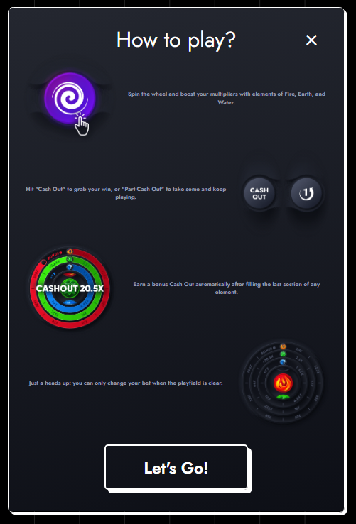 Le cœur du jeu repose sur les cercles du vortex où les éléments doivent être placés. À chaque tour, le joueur appuie sur le bouton Vortex pour faire apparaître un symbole d’élément au centre du jeu. Chaque élément – Feu, Terre, Eau, et Air – possède ses propres multiplicateurs, augmentant potentiellement les gains du joueur de manière significative.