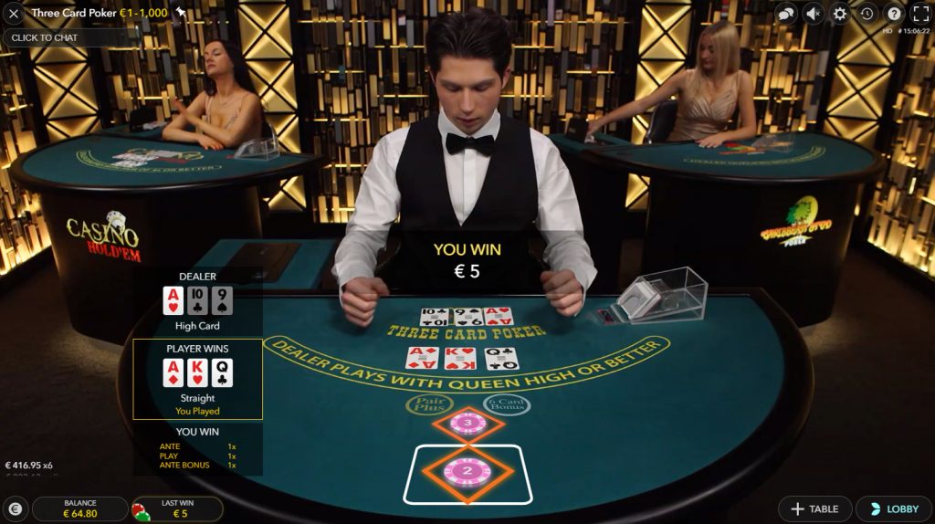 Three Card Poker est un jeu en direct se distinguant par son accessibilité. Il comporte, en effet, des options destinées aux débutants et aux professionnels.