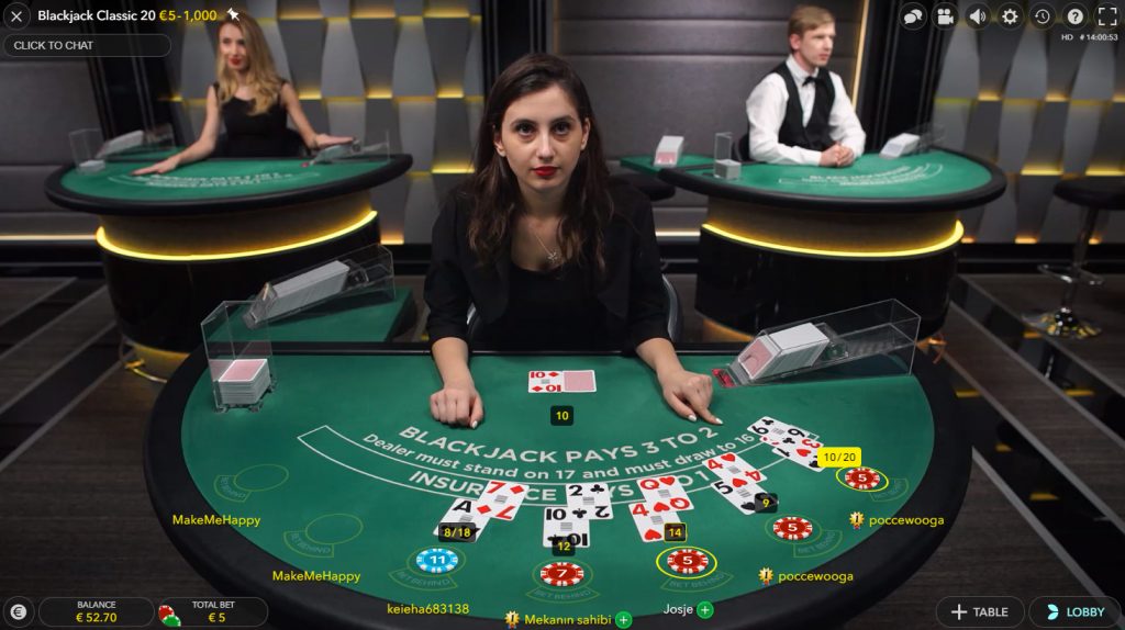 Le Blackjack en direct d’Evolution Gaming est considéré comme l’une des meilleures options de jeu de Blackjack en ligne. C’est un jeu live très populaire avec une volatilité moyenne et un RTP à 99,5 %. Il propose jusqu’à 7 places à table pour une expérience de Blackjack ultime en ligne.
