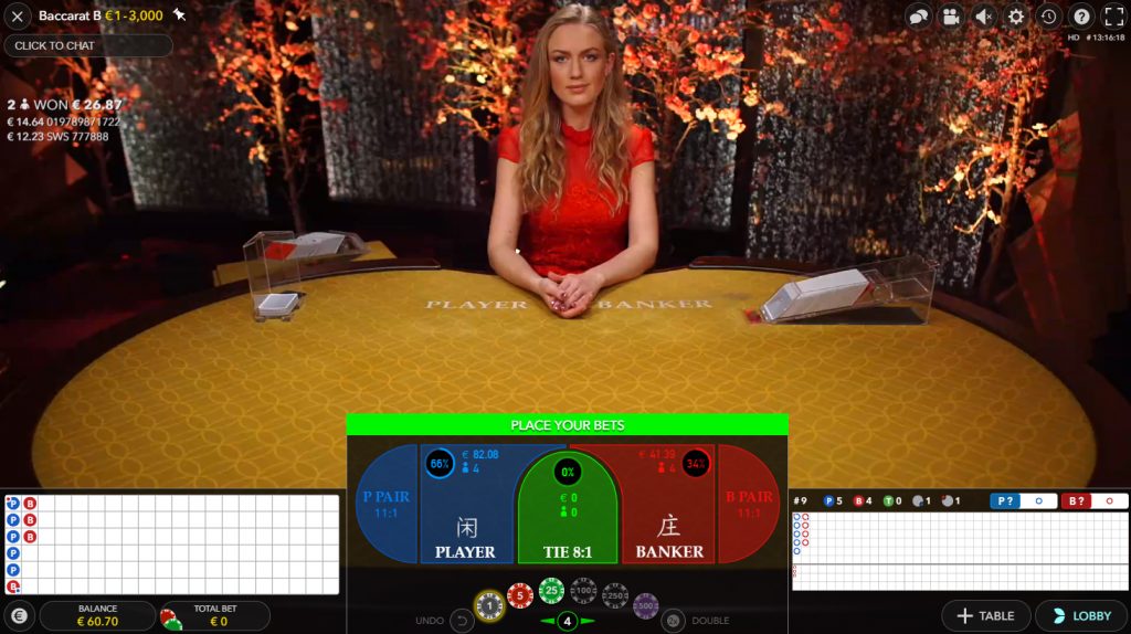 Le Baccarat en direct d’Evolution Gaming est un must-try pour les amateurs de Baccarat. Ce jeu de table avec croupier est aussi proche de l’expérience originale de Baccarat que possible. Il s’agit, ainsi, du jeu idéal pour les joueurs expérimentés.