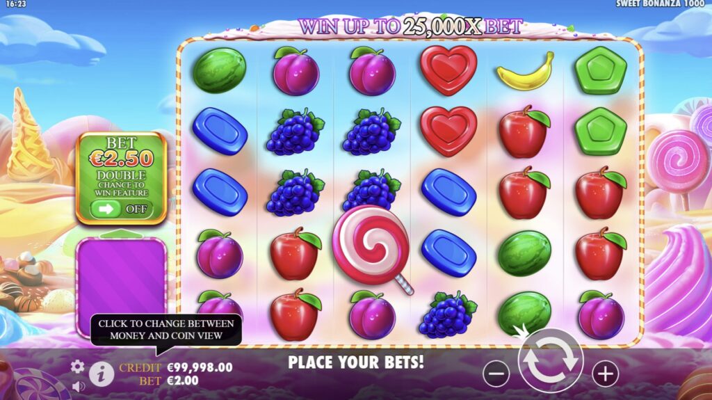 Ce slot présente des fruits colorés et des bonbons en guise de symboles. Les multiplicateurs peuvent atteindre jusqu’à 21 000 fois la mise initiale avec des fonctionnalités telles que les reels en cascade et les tours gratuits.