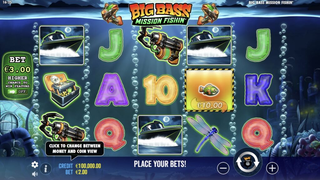 « Big Bass Mission Fishin' » offre une expérience de pêche inédite. Ce jeu de Pragmatic Play combine aventure et stratégie pour offrir des séances de jeu mémorables. Il fait partie des jeux Big Bass, très connu dans les machines à sous.