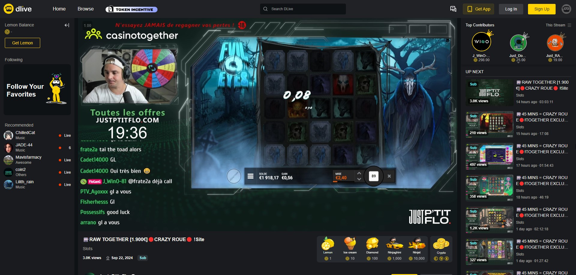P’tit Flo stream était autrefois sur les plateformes Twitch et Kick, mais suite à l’interdiction de stream du casino, le streamer est partie sur Dlive. Vous pouvez le regarder en live ici.